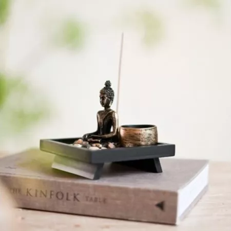 MODO DE USAR: Organize os itens na base de madeira conforme a foto ou seguindo sua intuição. Acenda a vela e o incenso e utilize um App de meditação guiada para auxiliar no seu processo e profundo relaxamento.